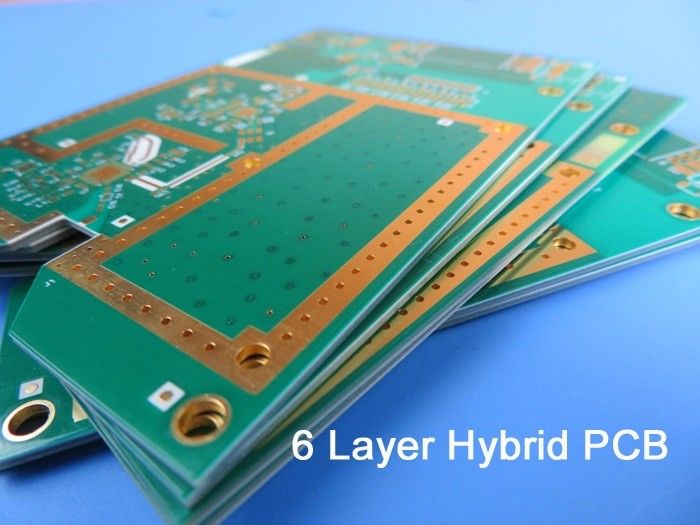 Questo PCB ibrido presenta una costruzione rigida a 6 strati, progettata meticolosamente per massimizzare le prestazioni e l'affidabilità.e strati di prepreg RO4450FQuesta combinazione accuratamente progettata garantisce una trasmissione del segnale efficiente e un'eccellente gestione termica, anche in condizioni difficili.
