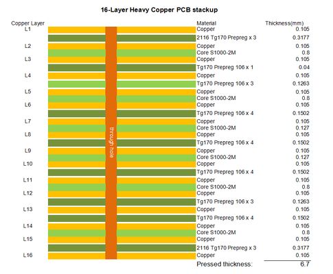 | Configurazione degli strati | PCB a 16 strati, rame pesante da 3oz per strato |
